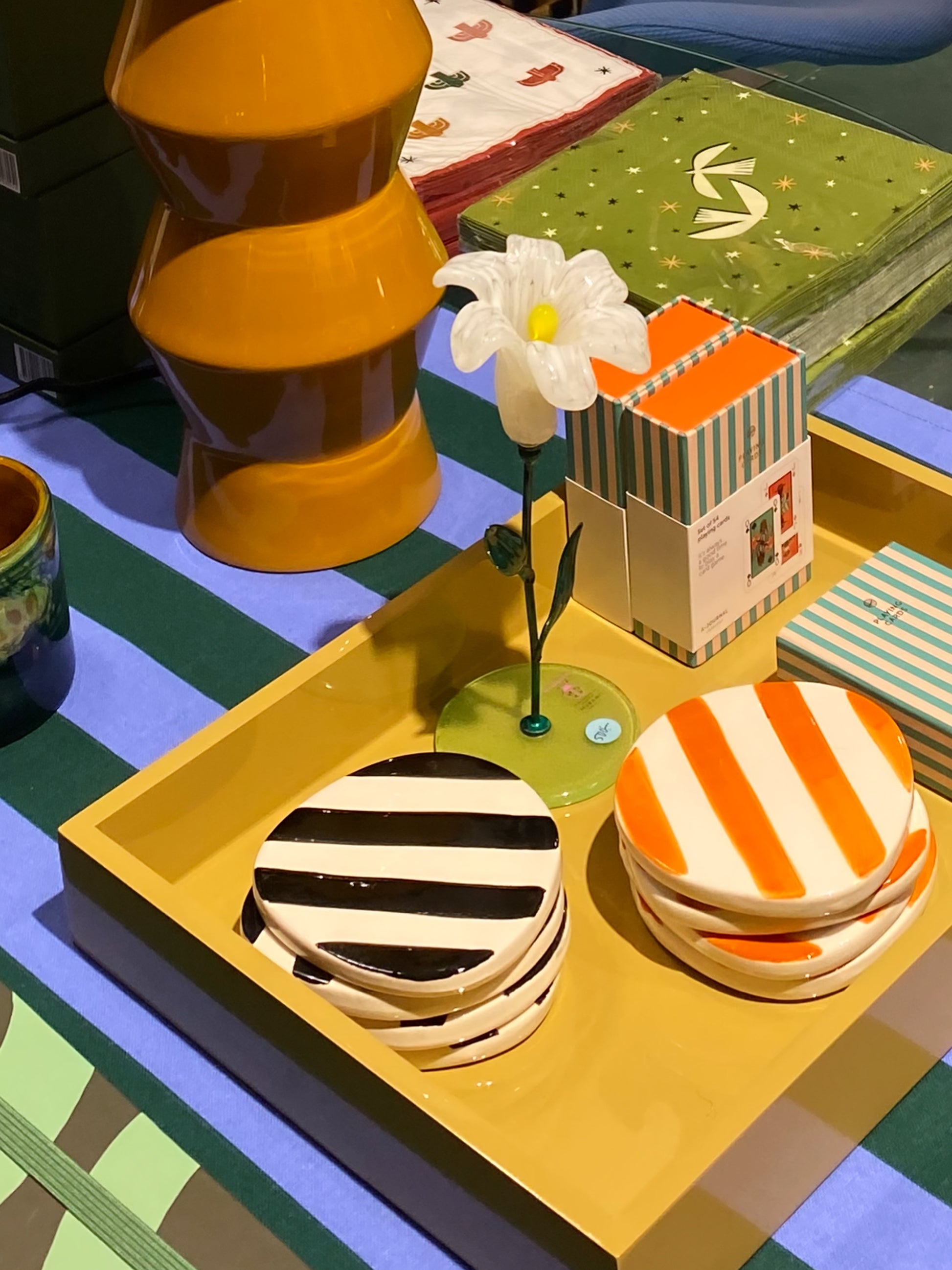 Set med 4 stycken oregelbundet formade glasunderlägg i keramik.
